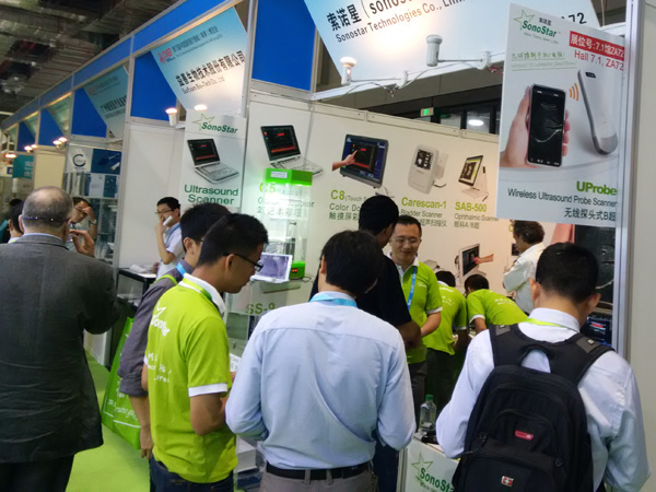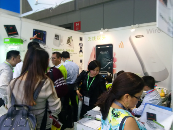 Our wireless ultrasound probe scanner became a highlight of fair, many customers were attracted, visit and enquire, also many customers were even attracted to our booth by its reputation after heard from others or received our flyer card.