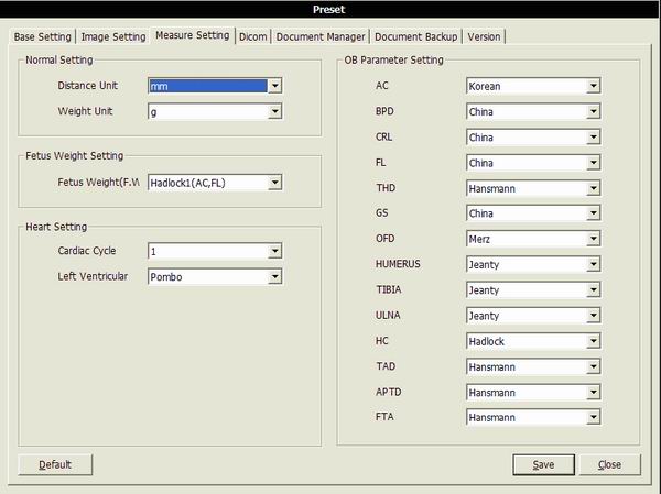 M mode: heart rate, time, distance, slope and stenosis;