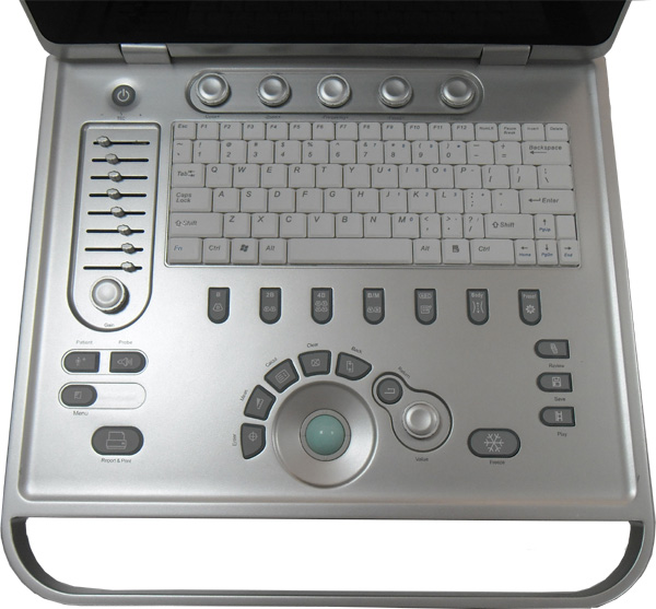 Feature: -15 inch LCD screen -Full digital imaging technology, crystal-clear Image -Pretty and light -8 segment TGC -Broadband multi-frequency probes -2 probe connector -Silica gel backlight gravure laser keyboard -USB flash disk large volume image storage -Cine loop -Built-in battery(can work more than 5 hours) -High Cost-effective